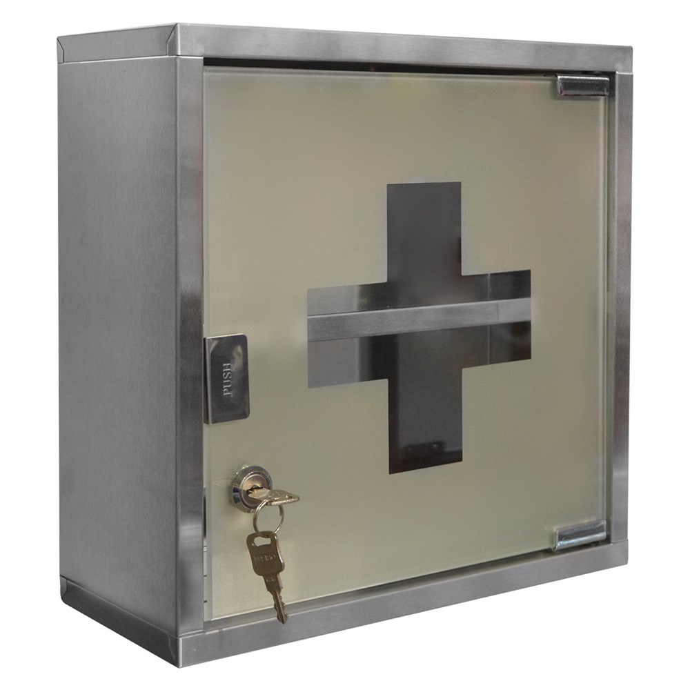 First aid box, 30x12xH30 cm, stainless steel & glass