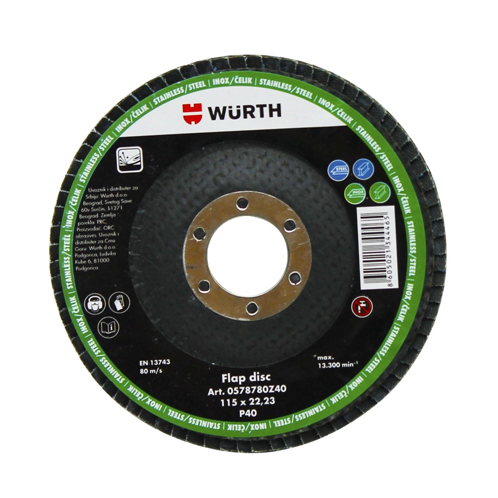 Flap wheel, Wurth, 115x22 mm, Grit 40