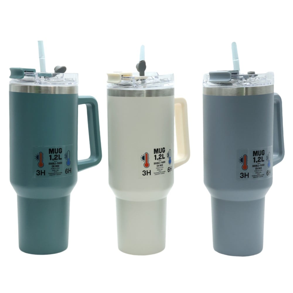 The stainless steel thermos in different colors with a capacity of 1.2 liters and a diameter of 10x a height of 26 cm is an excellent choice for keeping water or liquids cool or hot for a long time. The thermos is built with stainless steel, a durable and thermally insulated material, which makes it suitable for maintaining high temperatures for a long time. The silver color gives an elegant and modern look.