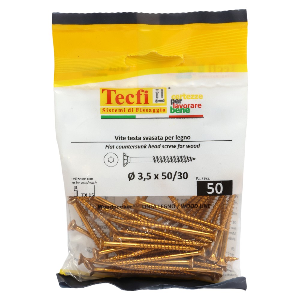 You're reviewing:Flat CSK head torx recess chipboard screw,yellow zp, Ø3,5x50/30mm, Bag 50