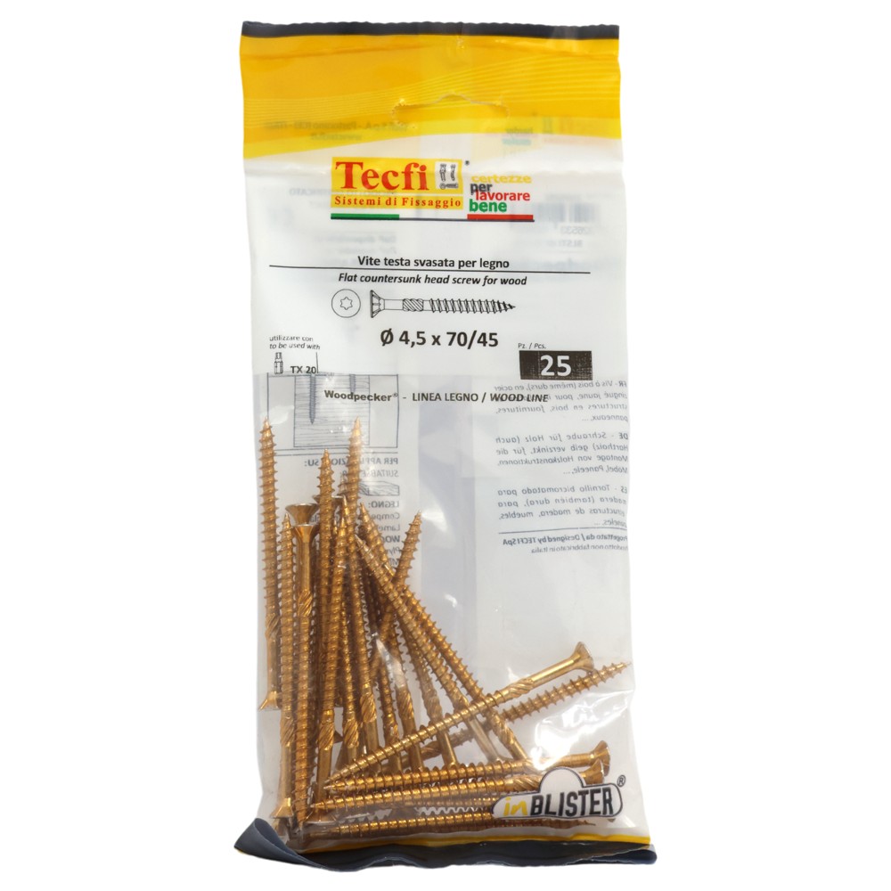 You're reviewing:Flat CSK head torx recess chipboard screw,yellow zp, Ø4,5x70/45mm, Bag 25