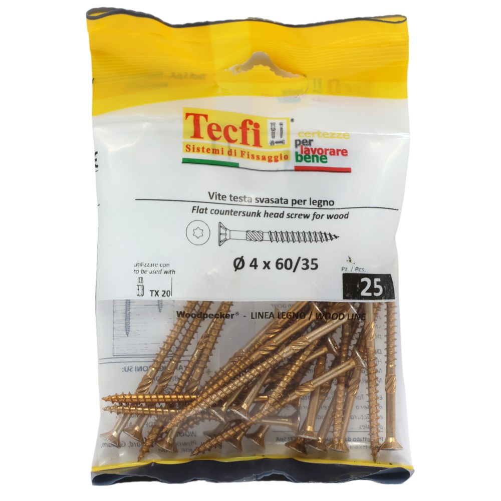 You're reviewing:Flat CSK head torx recess chipboard screw,yellow zp, Ø4x60/35mm, Bag 25