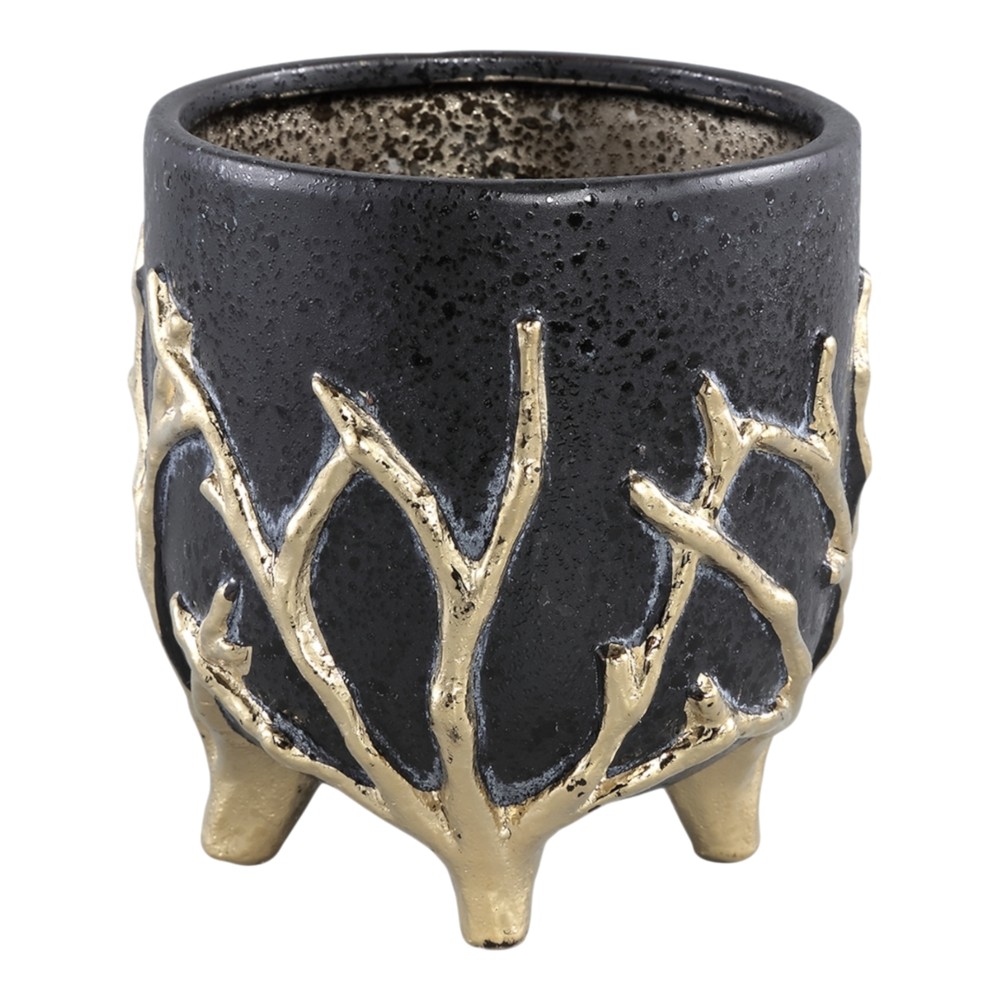 Flower pot, ceramic, black/golden, 15.5x15.5xH16 cm