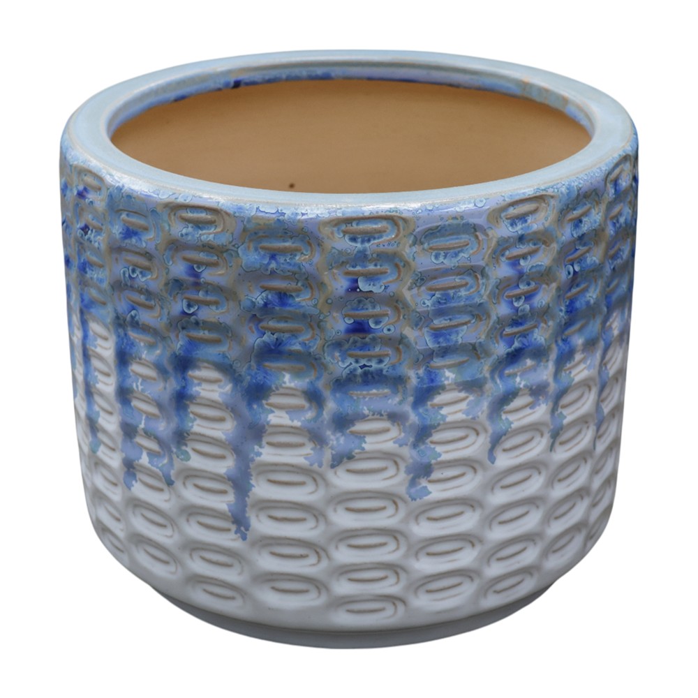 Flower pot, M, ceramic, white/blue, Ø26xH22 cm