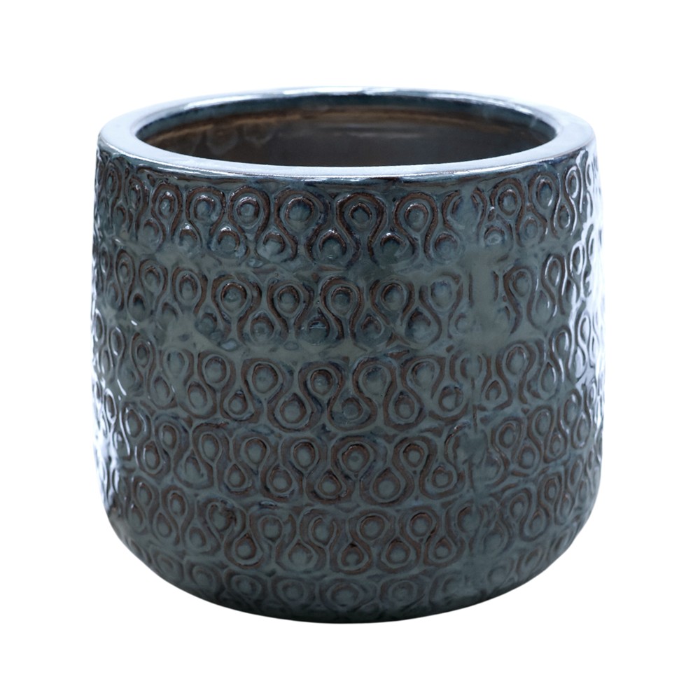 Flower pot, S, ceramic, blue/brown, Ø20xH18 cm
