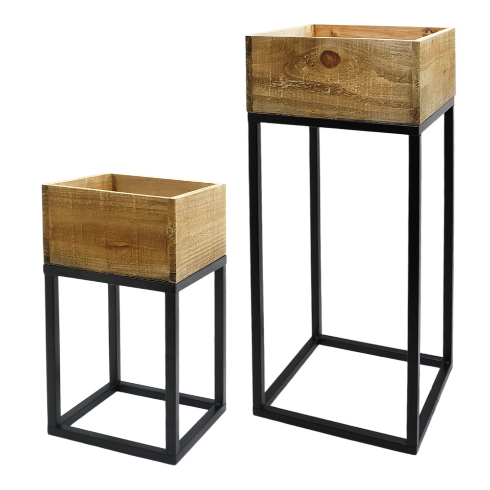 Flower pot, set 2 pieces, metal/wooden, brown/black, 17xH34 cm; 22xH54 cm
