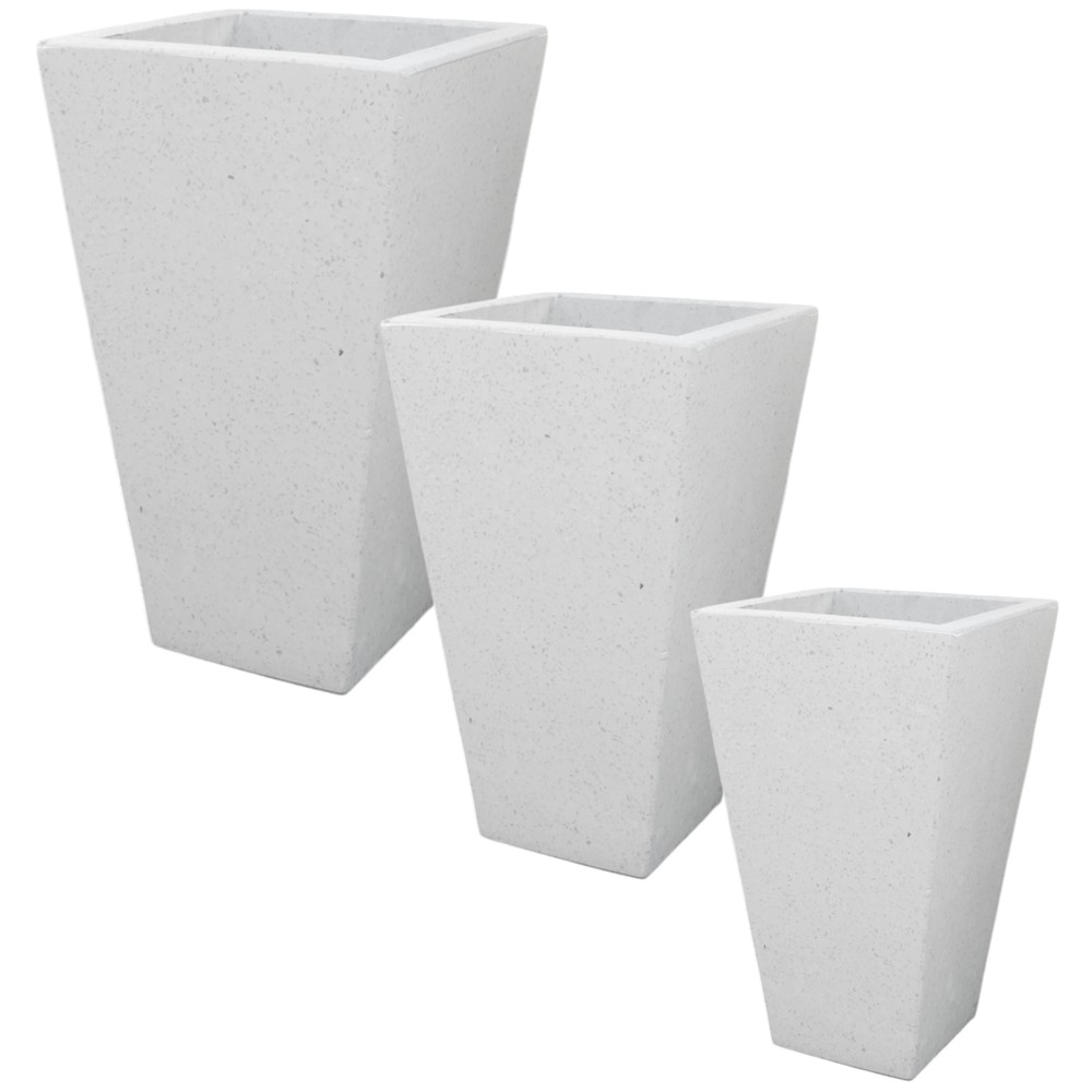 Flower pot, set 3 pieces, concrete, white, S: 26x26xH45cm; M: 34x34xH62cm; L: 45x45xH81cm