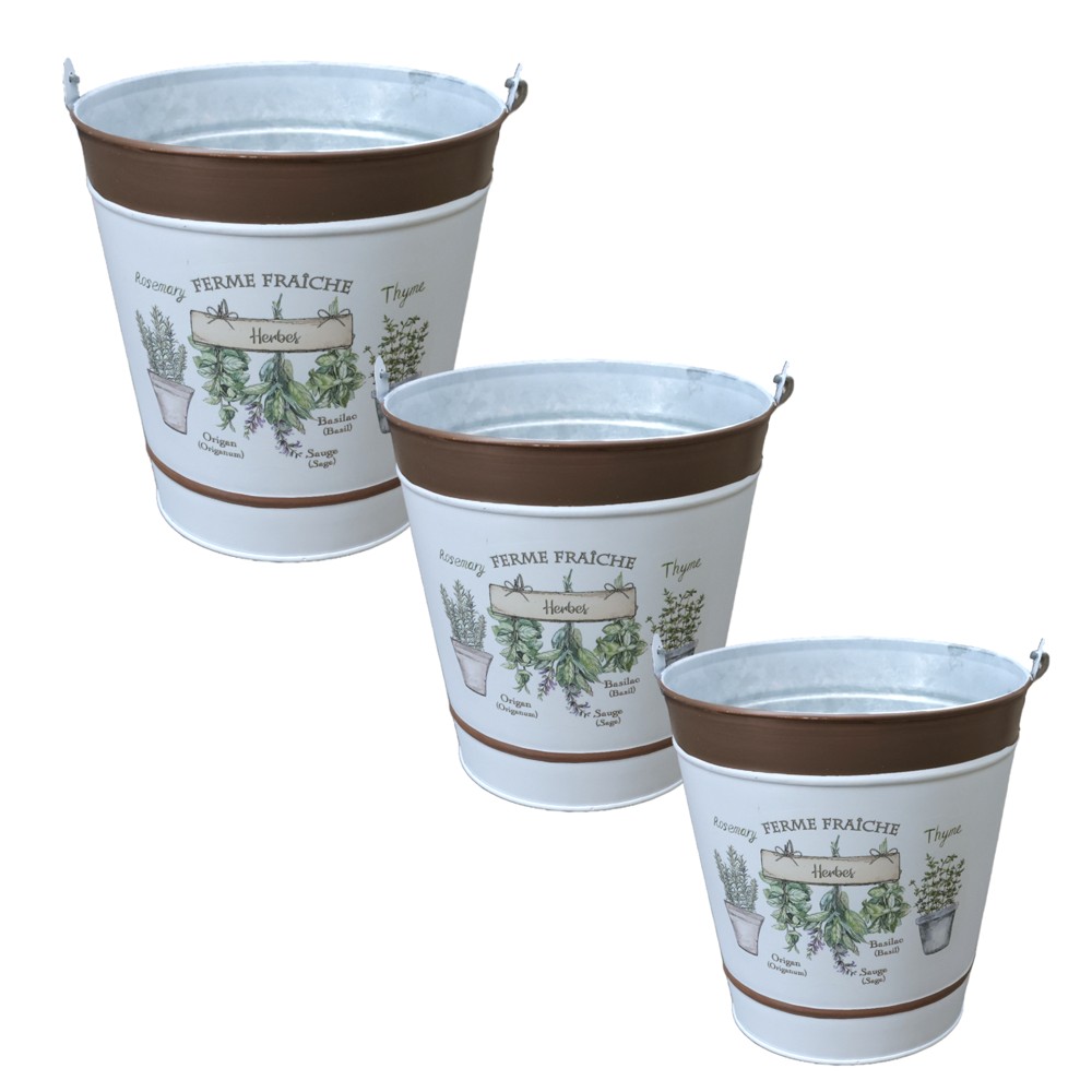 Flower pot, set 3 pieces, metal, white/brown, 15x16 cm; 17.5x18 cm; 20x20 cm