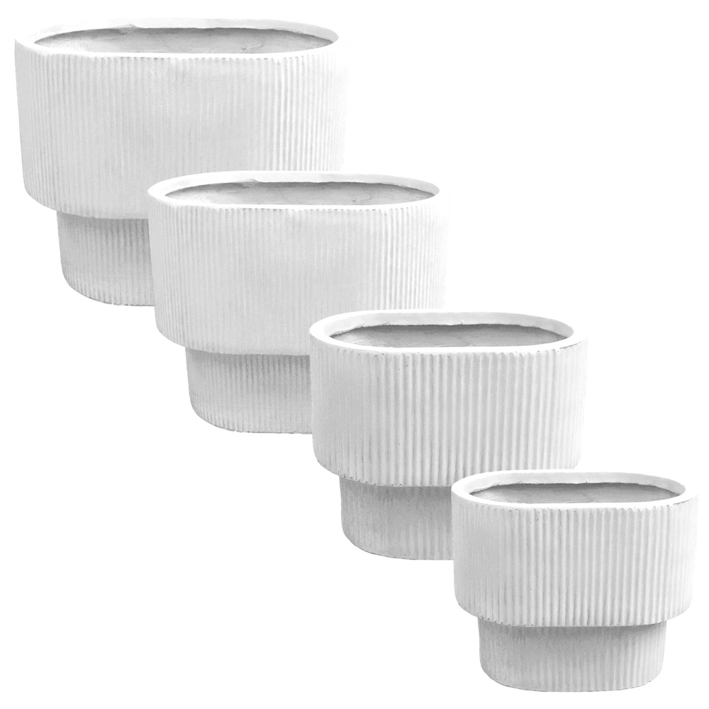 Flower pot, set 4 pieces, fibreclay, white, 34x22x26 cm; 45x29x34 cm; 55x36x43 cm; 67x43x51 cm