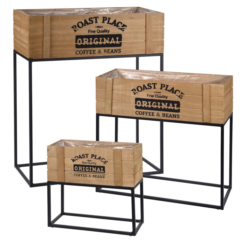 Flower stand, wooden/metal, brown/black, 3 pieces