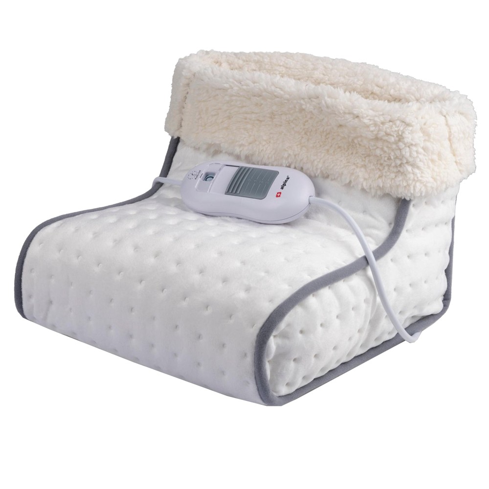 With the electric foot heater from Alpina in wool white you will have wonderfully warm feet. The foot warmer is in fact a giant slipper that you can put both feet in at the same time. Thanks to the fleece inner layer and electric heating, your feet are not only warm, but also comfortable. The ideal gadget for when you come home from a winter walk, to use under your desk while working from home or for the evening on the couch. You can detach the fleece inner layer from the foot warmer and wash it in the washing machine. he foot warmer works very easily. Plug the plug into the socket and set the thermostat with the wired remote control. Choose from the 3 heat settings which you find most comfortable. With its 100 Watt power, it quickly provides wonderful warmth. The foot warmer turns on automatically when the thermostat is set to a temperature and the corresponding LED light comes on. Do you slide the remote control to position '0'? Then the foot warmer goes out again, just like the indicator light. After 90 minutes of continuous use, the electric foot warmer switches off automatically. This saves energy and provides extra safety. The LED light flashes during automatic shutdown. The inner cover of the foot warmer is wonderfully soft, so it feels nice on your feet and lower legs. Also nice: you can remove this cover and wash it in your washing machine at 30 degrees. This way you keep the foot warmer nice and fresh.