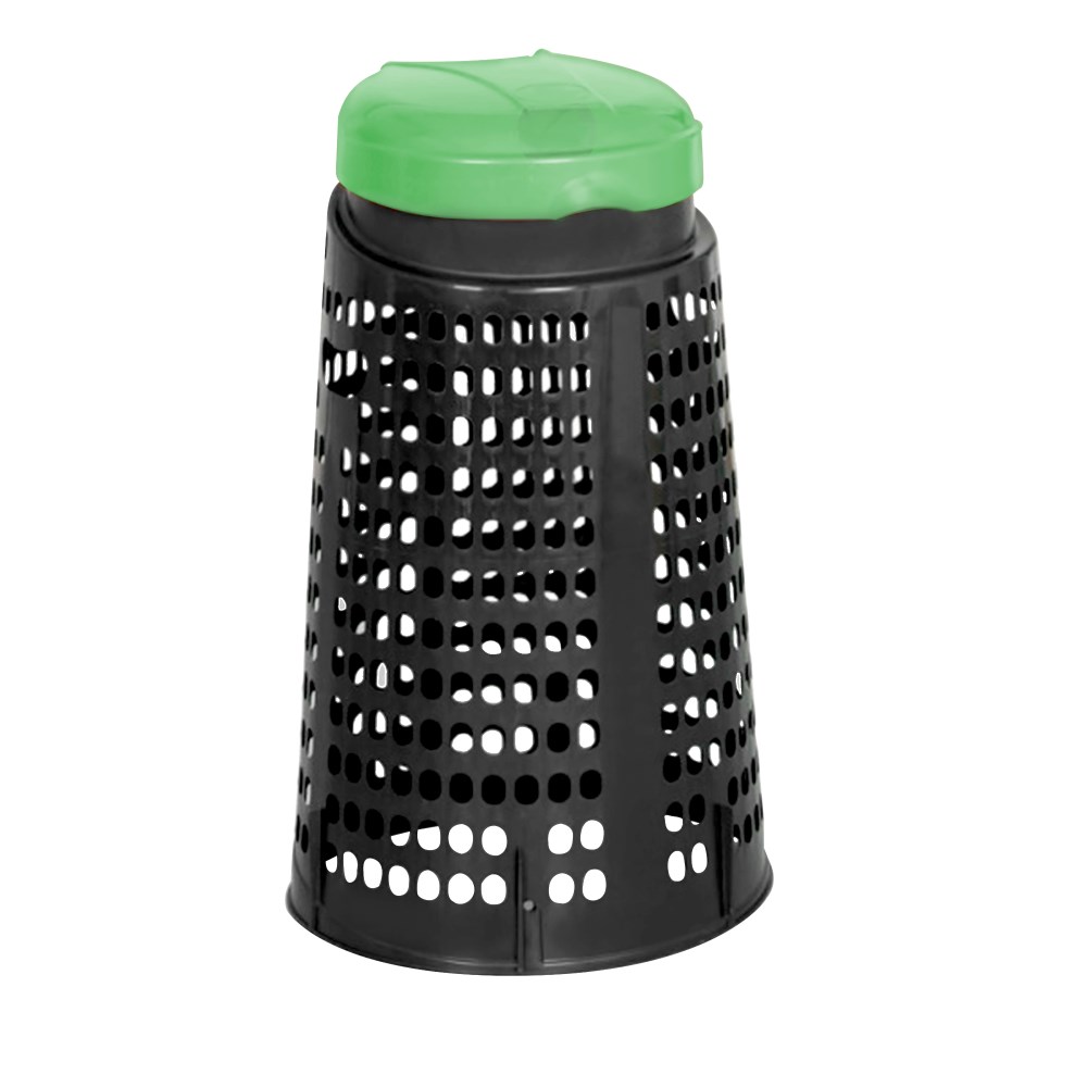 Grilled Eco-bin in polypropylene black with green lid 110 liters. Robust, easy to use and also suitable for bags up to 110 liters. No assembly required. The product comes ready to use. It does not absorb odors, does not fear the moisture and is washable.