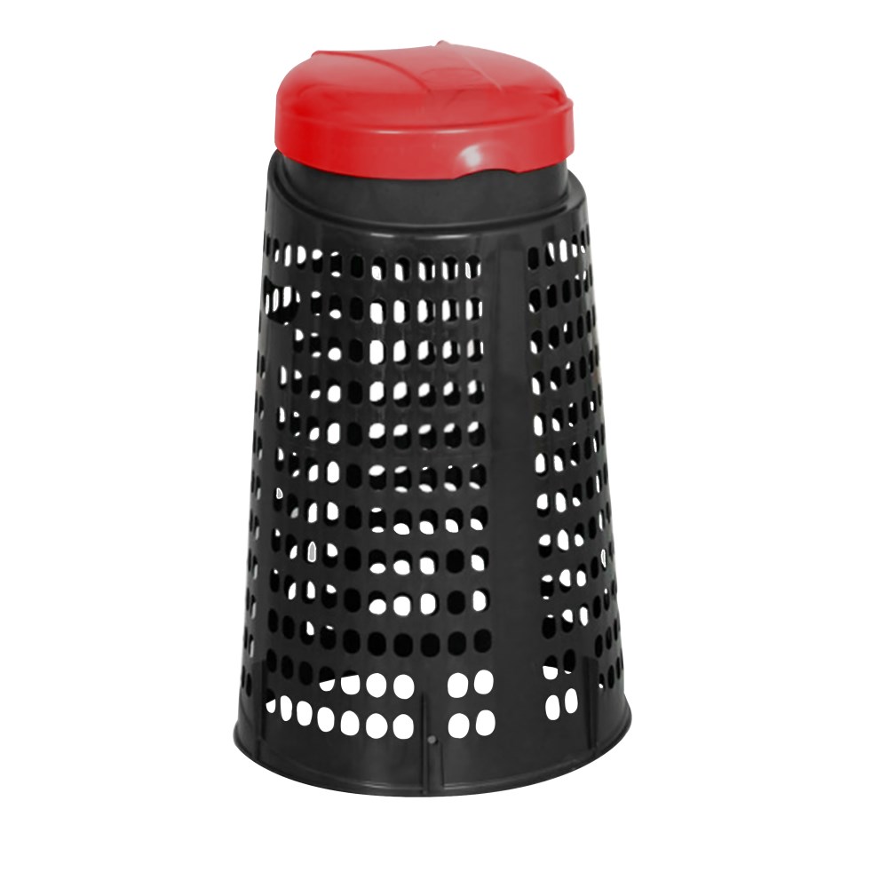 Grilled Eco-bin in polypropylene black with red lid 110 liters. Robust, easy to use and also suitable for bags up to 110 liters. No assembly required. The product comes ready to use. It does not absorb odors, does not fear the moisture and is washable.