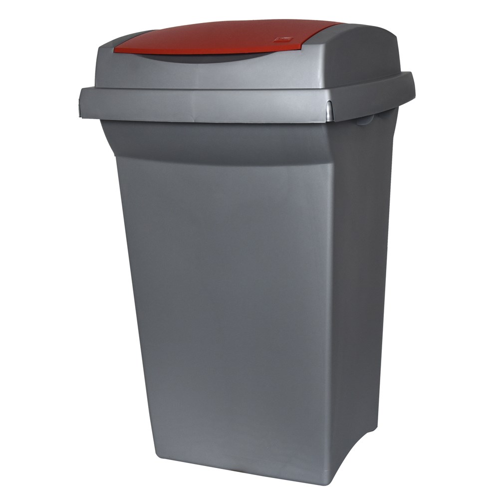 Garbage bin, 50 lt, plastic, grey, red lid, 43x39xH68 cm