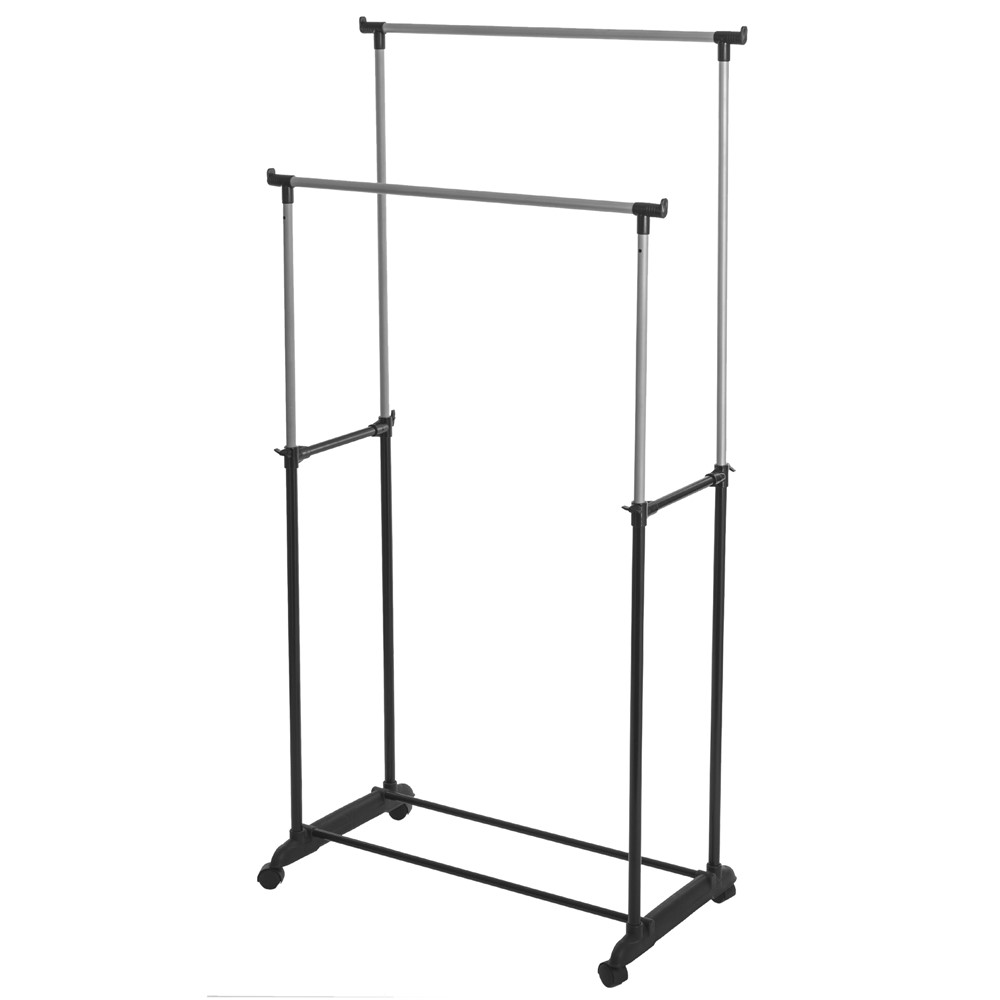 Mobile coat hangers, double handle, 160 cm. Take care of the organization of your clothes. A suitable coat hanger is required so that they can hang freely without crumpling or destroying. Keep your shirts, dresses, skirts and other items of clothing neat, tidy and chic with this simple but necessary item in every home! A good hanger saves space and time. It does not take up much surface and stretched clothing does not have to be ironed before each setting.