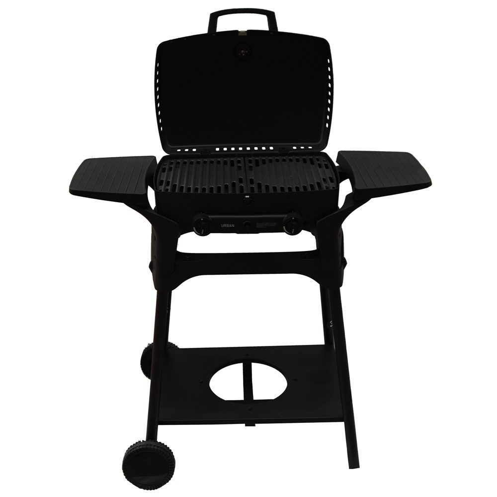 Gas barbecue Enders Urban trolley, made of stainless steel material and plastic frame, rectangular shape, with two wheels and two support legs, lid with handle. The barbecue has two stainless steel cooking zones and two rotary knobs, which allow adjustment to the right cooking temperature. This barbecue has a lid with a built-in thermometer. The sturdy holder with a height of 86 cm gives you the option of keeping the barbecue on it or not. Cleaning this barbecue is quick and very practical as it has a removable fat tray. It is used for roasting meat, vegetables, fish, etc. It has a total power of 4.4 kW. This product is practical to use, easy to clean.