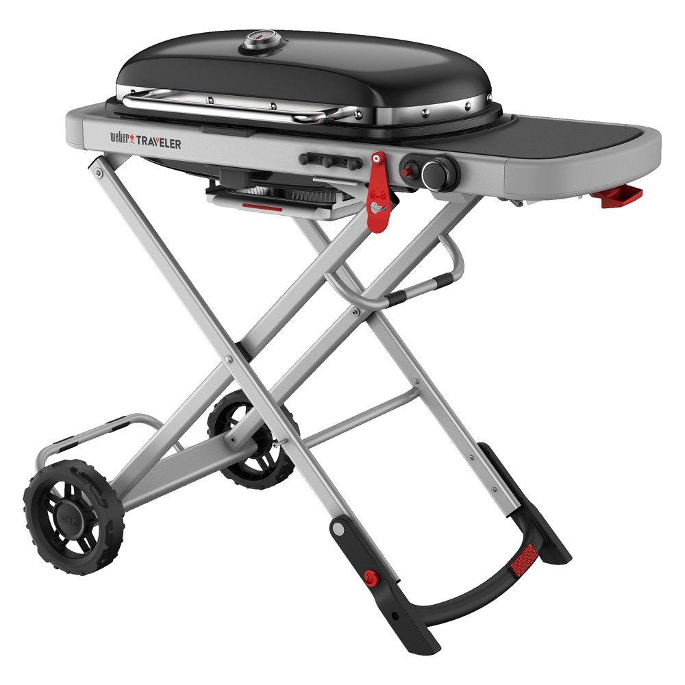 Gas barbecue, made of metal material, rectangular shape, with wheels, lid with handle, a side table with hooks for hanging accessories, which is used to place cooking equipment, food and other accessories, as well as a folding frame which makes its transport easier. The barbecue has a cooking hearth which ensures optimal cooking and heat distribution. The lid is made of an enameled porcelain layer, and has a built-in thermometer. It is used for roasting meat, vegetables, fish, etc. This product is practical in use, easy to clean and compact in size, which makes it suitable for travel, camping, picnic, etc.