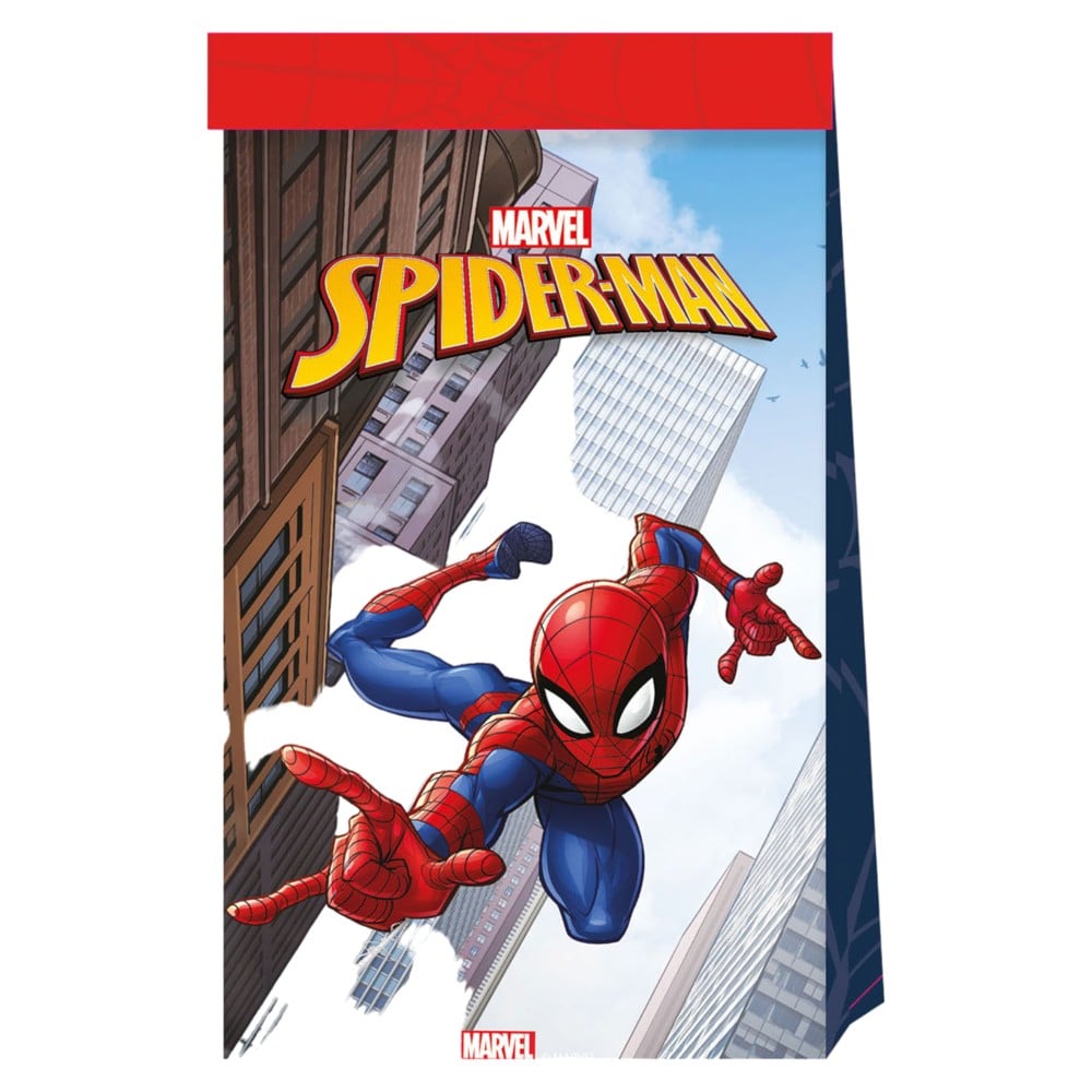 Gift bags, Spiderman is a special set of gift bags with the theme of the character Spiderman. The cans are made of cardboard material and are decorated with the theme of Spiderman. Each bag has a size of 22x13 cm. The set includes 4 cans with the theme of Spiderman. This product is suitable for use at Spiderman themed birthday parties, themed parties, festive events, and any other occasion where special Spiderman themed gifts are desired.