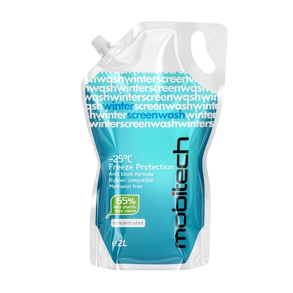 Mobitech Winter Screenwash Flexi -25°C (2L) is specially formulated for cold winter conditions, providing reliable frost protection down to -25°C. This solution effectively removes dirt, ice, salt and road grime, ensuring clear and safe vision while driving. Its composition is gentle on the windscreen cleaning system and does not damage the tires or the car's paint. The flexible 2-liter packaging is practical for use and storage, making this product the ideal choice for winter vehicle maintenance.