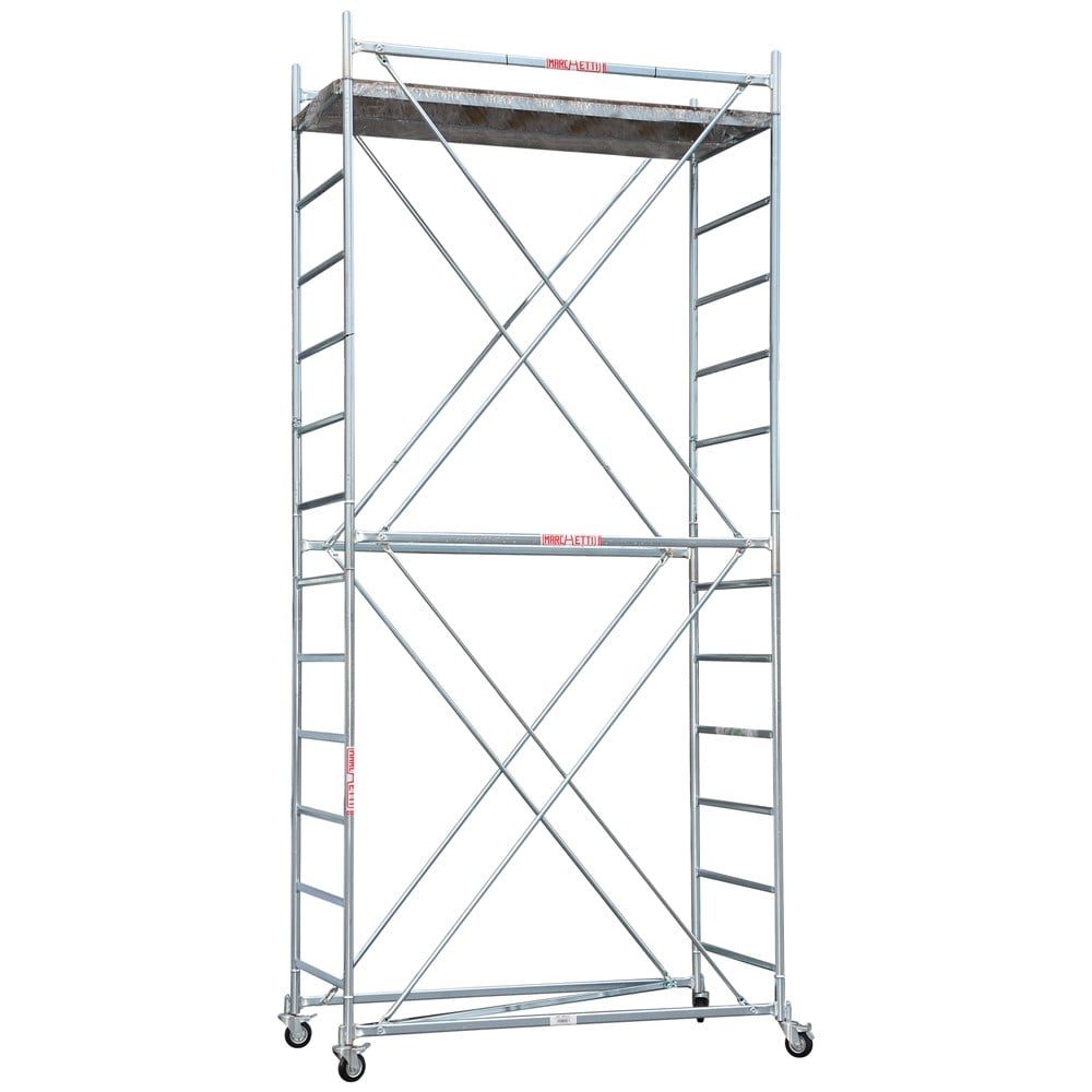 GRIM -Essential for every kind of maintenance in construction areas, easy to transport, not bulky, shrink-wrap film packed, very quick to assemble, It is easily transportable by car. Made of galvanized steel. Uprights in Ø 35 mm tubular steel. Equipped with wheels for easy movement. Shrink-wrap film packaging