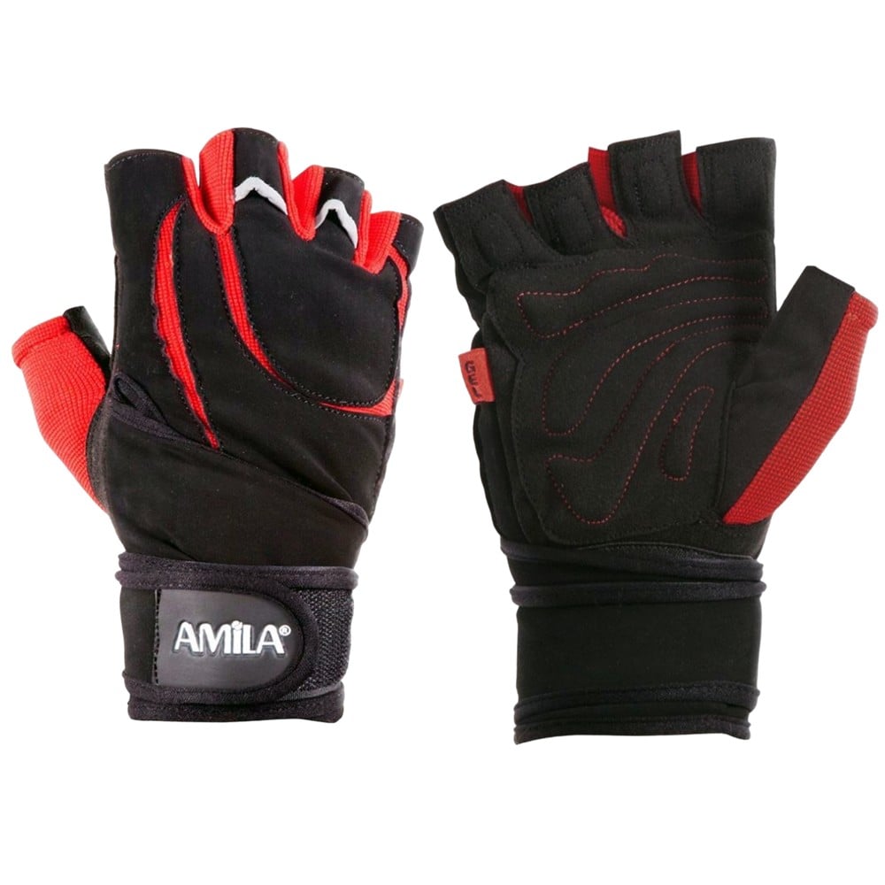 Gym gloves, Amila, size XL, color red with black