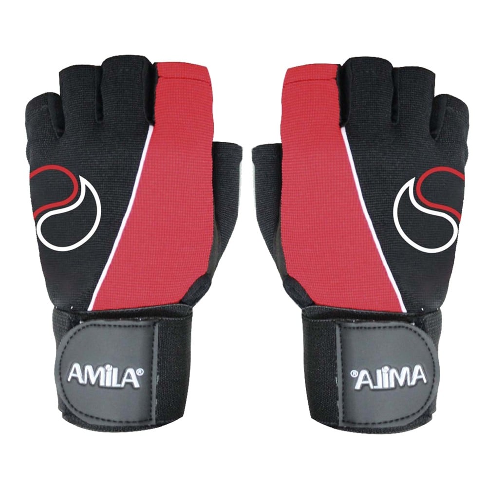 Gym gloves, Amila, size XL, with protective layer inside, red and black
