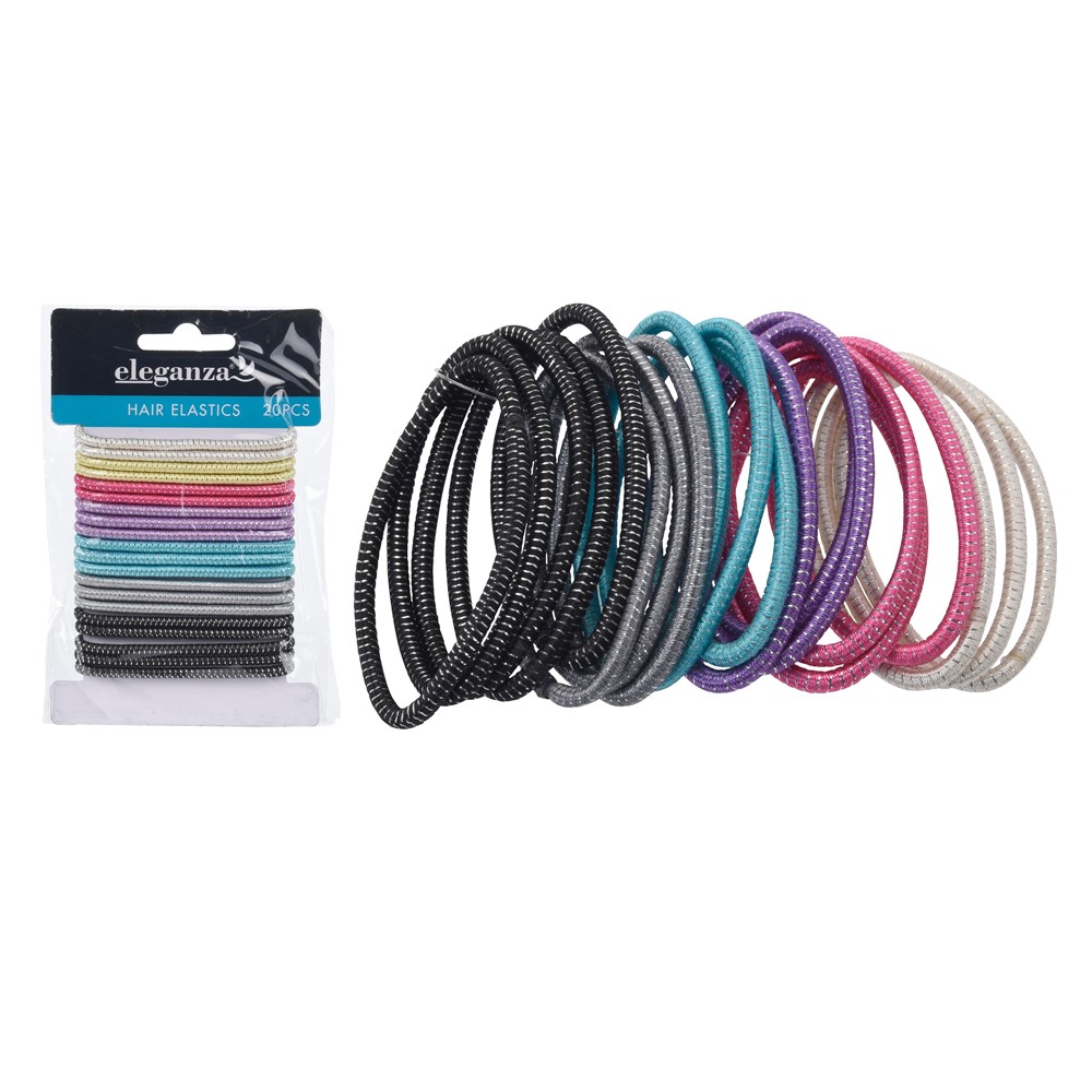 Thin hair clip, made of 100% polyester material, size; 1x9.40 cm, in different colors with 20 pieces of packages. Used to tie hair for both children and adults.