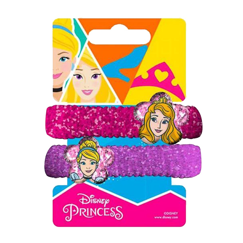 Children's Hair Scrunchies, Princess is a set of hair ties designed with princess motifs. The elastics are in purple and pink, and come in a set of 2 pieces.