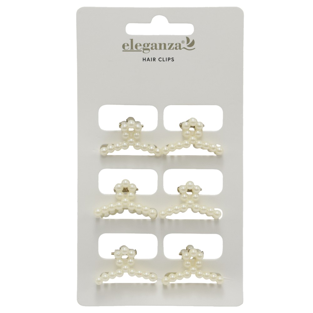 Hair clips, white, mixed, 6 pieces, 1 pack