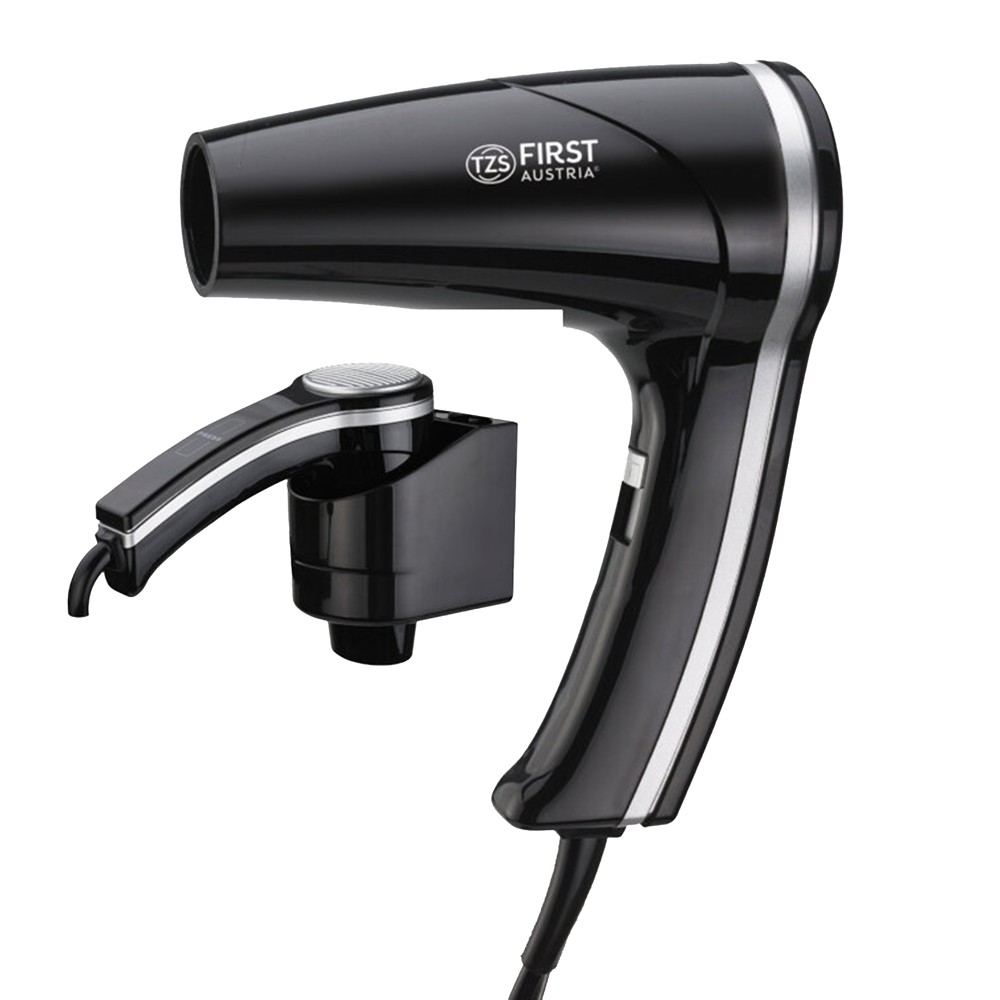 Hair dryer with 1200W base, ideal for hotels and rental rooms. It has a special design with a power switch on the handle so that it only works when you hold it. This ensures that it will never sit idle without anyone using it. It has two temperature settings and a function for cold air and a 2 meter long spiral cable. Also available in black.