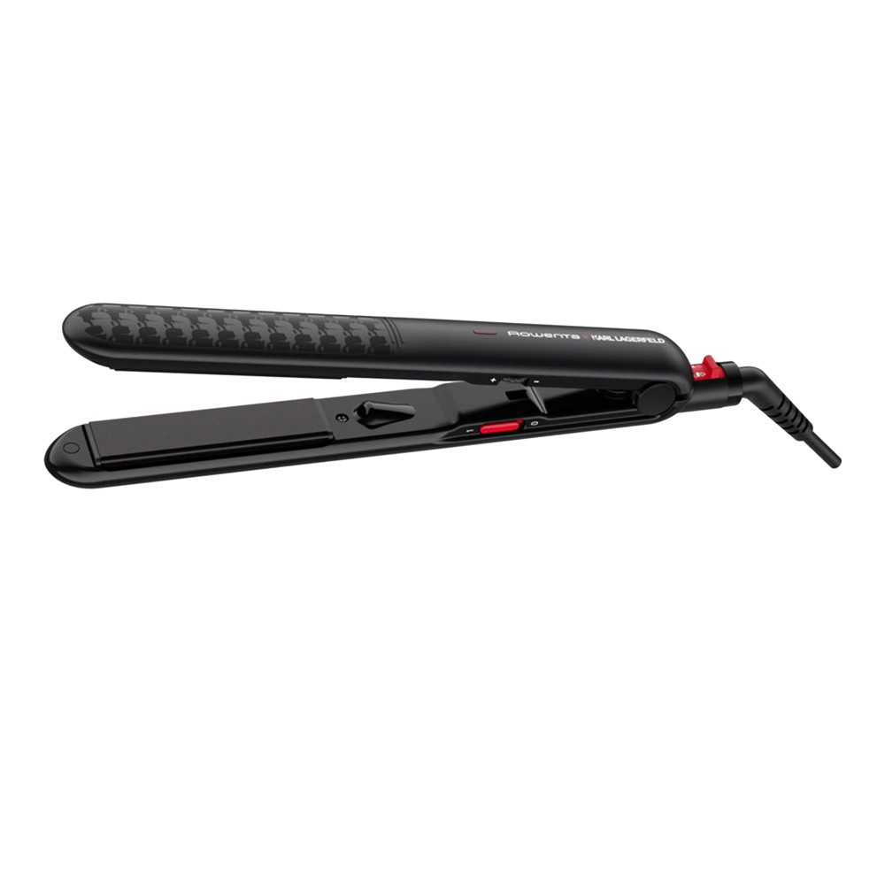 The Rowenta x KARL LAGERFELD Optiliss straightener ensures perfect handling with pure shine and shine. The exclusive Keratin & Tourmaline coating adds shine and reduces static and frizzy hair. Designed for all your styling needs, the precise temperature setting of up to 230°C adapts to different hair types. One-stroke performance with the help of floating tiles pairs nicely with other features such as rapid heat-up in 30 seconds for easy styling of outstanding results.