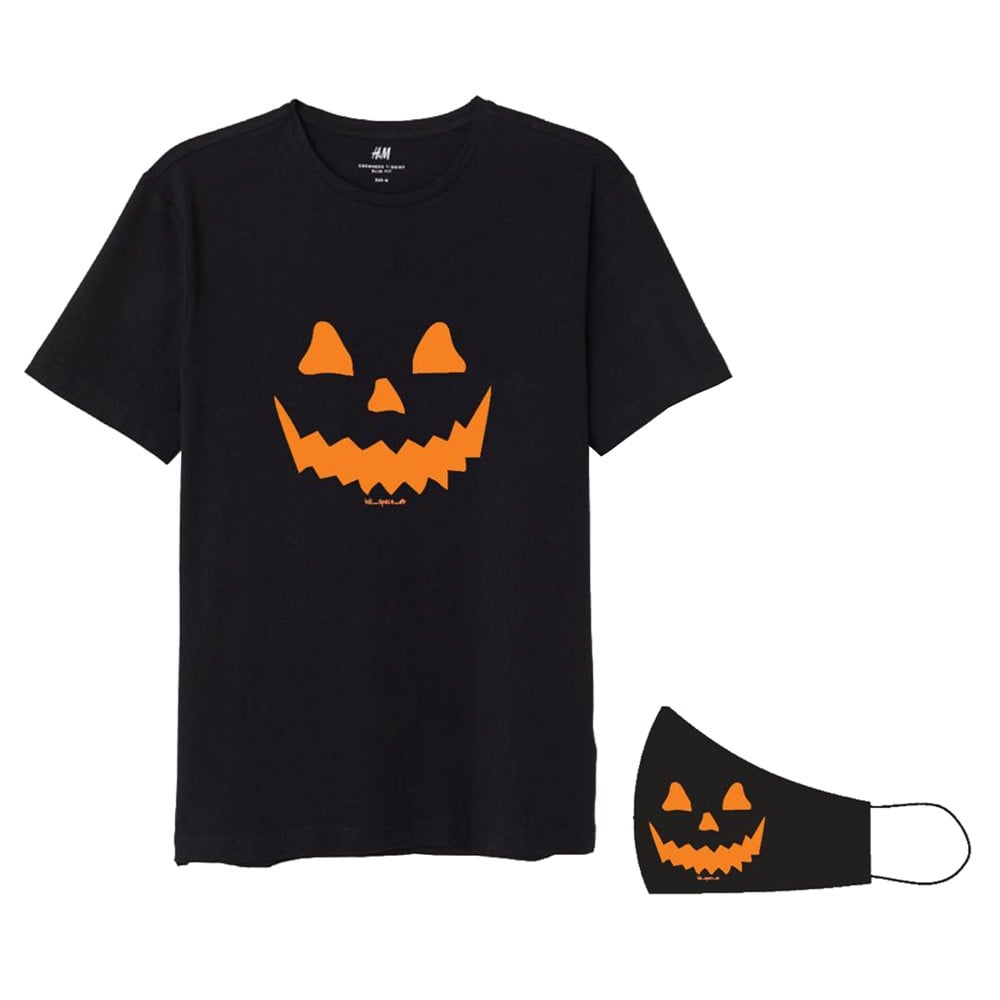 Halloween blouse with mask, which consists of 100% cotton material The blouses are for children aged 6-7 years. Ideal for Halloween party, carnivals. The blouse is black with pumpkin print.