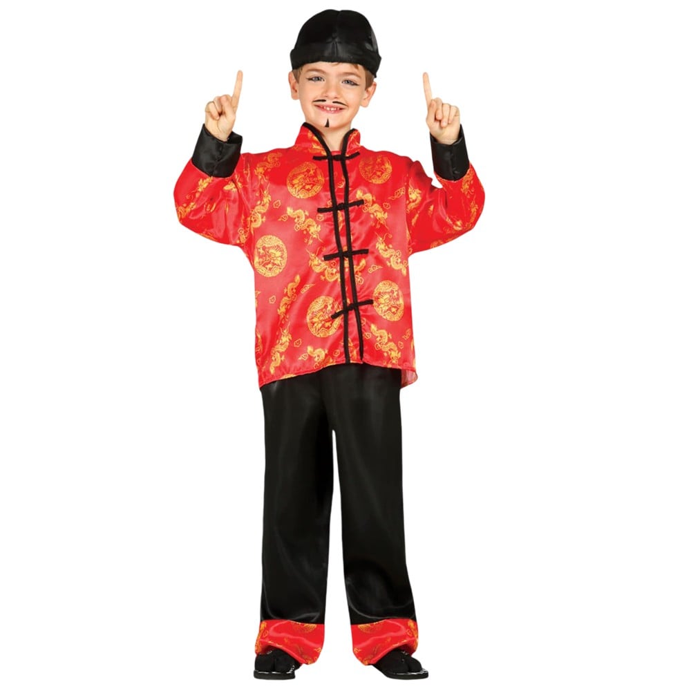 Chinese suit for children, made of polyester material, mixed color. The component material is soft to the touch and does not cause skin irritation. This product is suitable for use by children aged 5-6 years with a height of 110 cm to 115 cm, bust 59-62 cm, waist 55-57 cm, hips 62-64 cm.