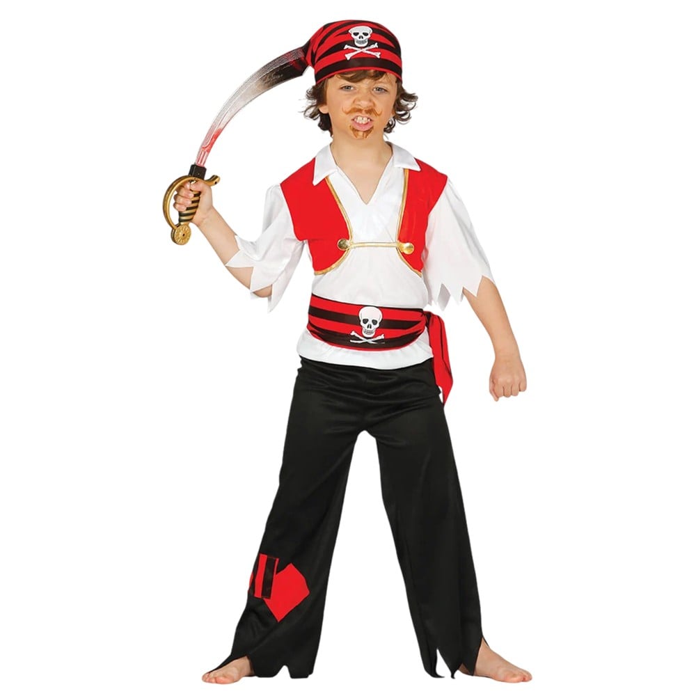 Pirate costume for children, made of polyester material, mixed color. The component material is soft to the touch and does not cause skin irritation. This product is suitable for use by children aged 7-9 years with a height of 125 cm to 135 cm, bust 67-70 cm, waist 59-60 cm, hips 67-72 cm.