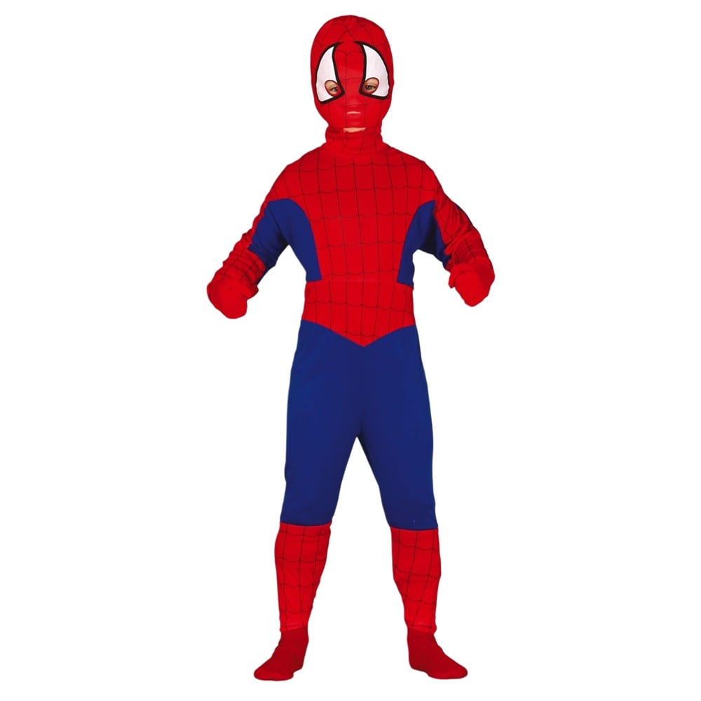Spiderman costume for children, made of polyester material, mixed color. The component material is soft to the touch and does not cause skin irritation. This product is suitable for use by children aged 3-4 years with a height of 95 cm to 105 cm, bust 56-58 cm, waist 53-55 cm, hips 58-60 cm.