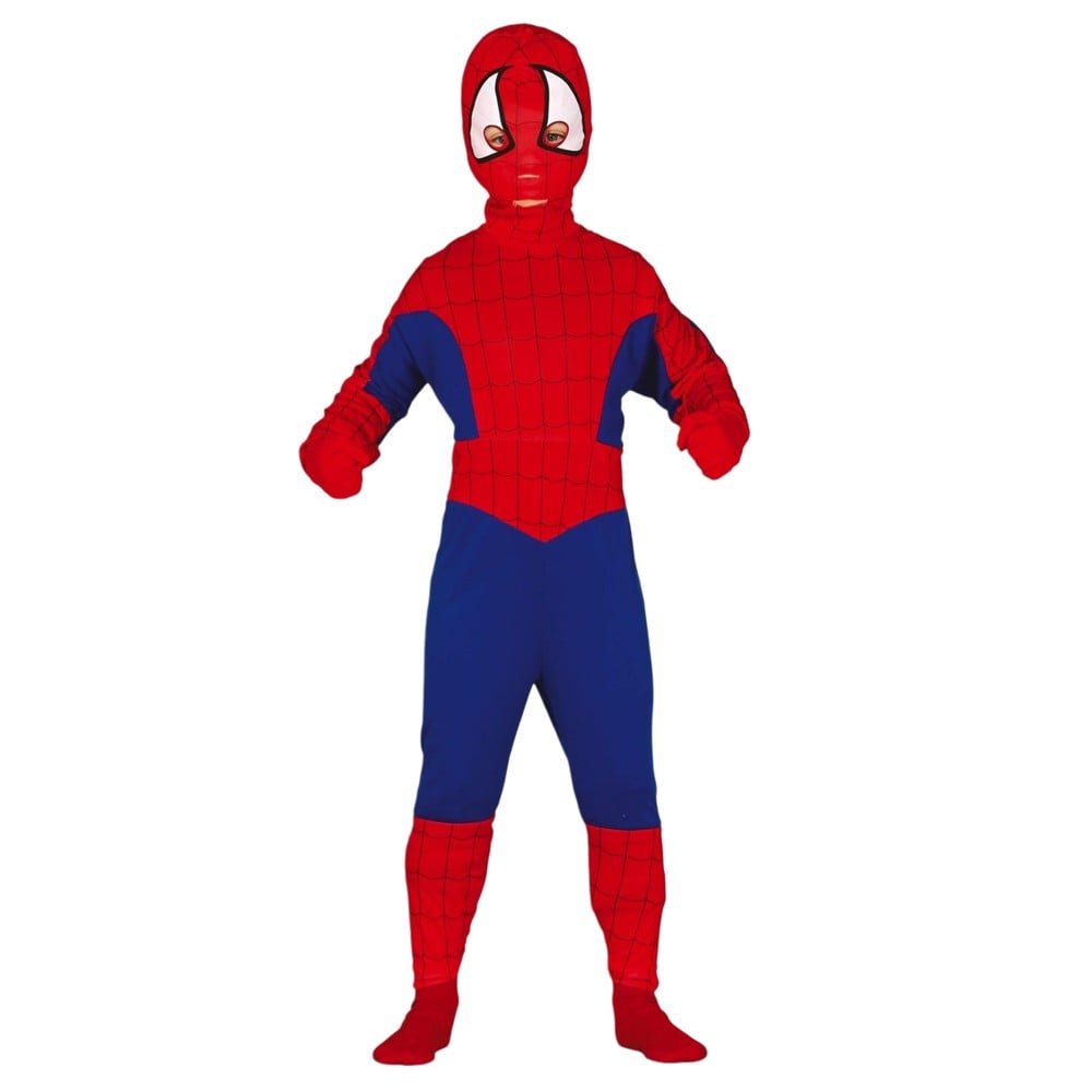 Spiderman costume for children, made of polyester material, mixed color. The component material is soft to the touch and does not cause skin irritation. This product is suitable for use by children aged 5-6 years with a height of 110 cm to 115 cm, bust 59-62 cm, waist 55-57 cm, hips 62-64 cm.