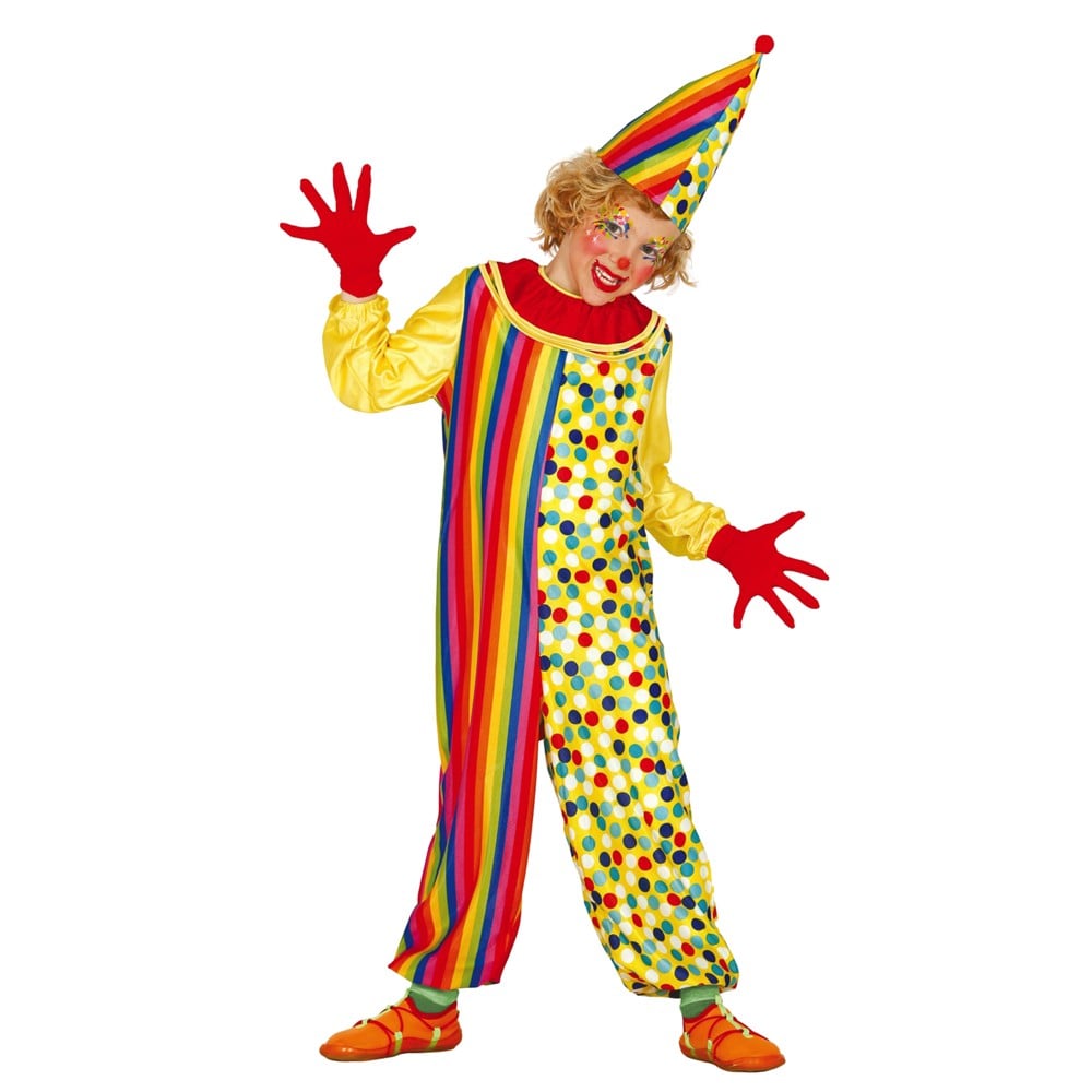 Clown costume for children, made of polyester material, mixed color. The component material is soft to the touch and does not cause skin irritation. This product is suitable for use by children aged 3-4 years with a height of 95 cm to 105 cm.