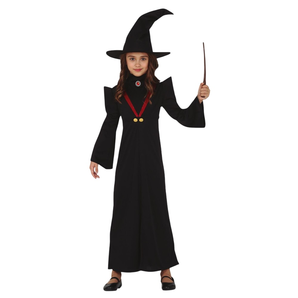 Halloween costume for girls, Wizard, Magician, 7-9 years, polyester, black, 1 piece
