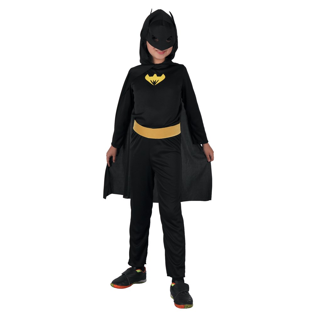 Perfect costumes for every one who wants to be a hero. With this dark costume you can call yourself Batman for a night! The costumes includes:hooded cape, shirt, pants and gold molded rubber utility belt wraps around the waist and secures with ties in the back. So you can be sure that we have all the gear for Batman costume fun!