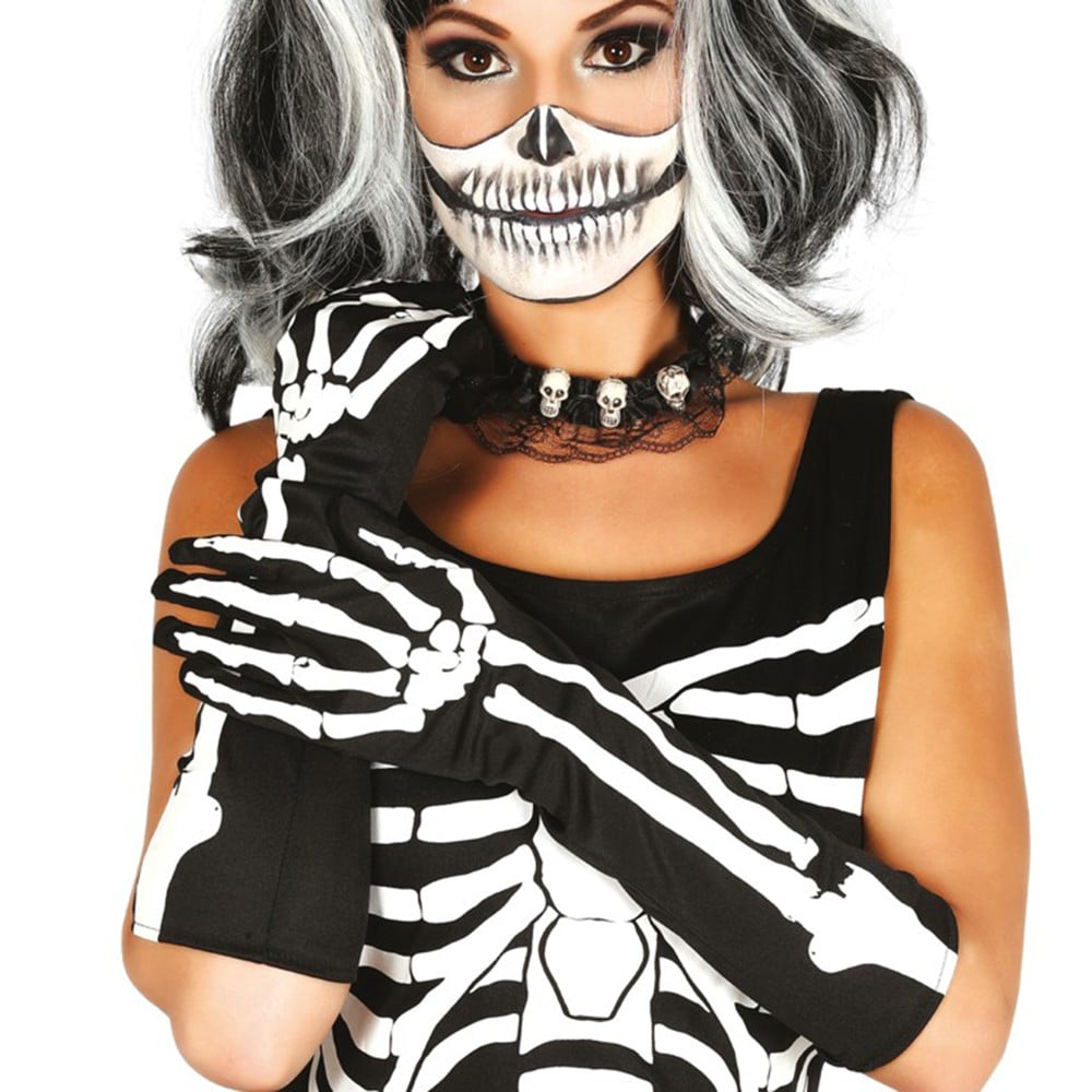 Halloween gloves are a great accessory to complete your Halloween party costume and add a spooky and special feel to your look. These gloves are black in color with skeleton design and specially designed to make your hands look scary and match the Halloween atmosphere.