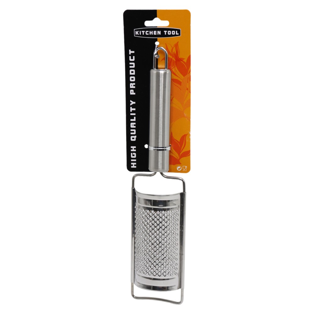 Stainless steel hand grater in silver color, length 24 cm. This product offers a great way to grate vegetables, cheese, or other products according to your preferences.