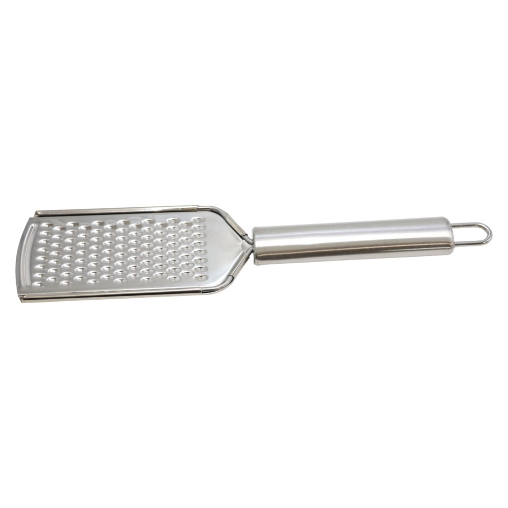Stainless steel hand grater in silver color, length 24 cm. This product offers a great way to grate vegetables, cheese, or other products according to your preferences.
