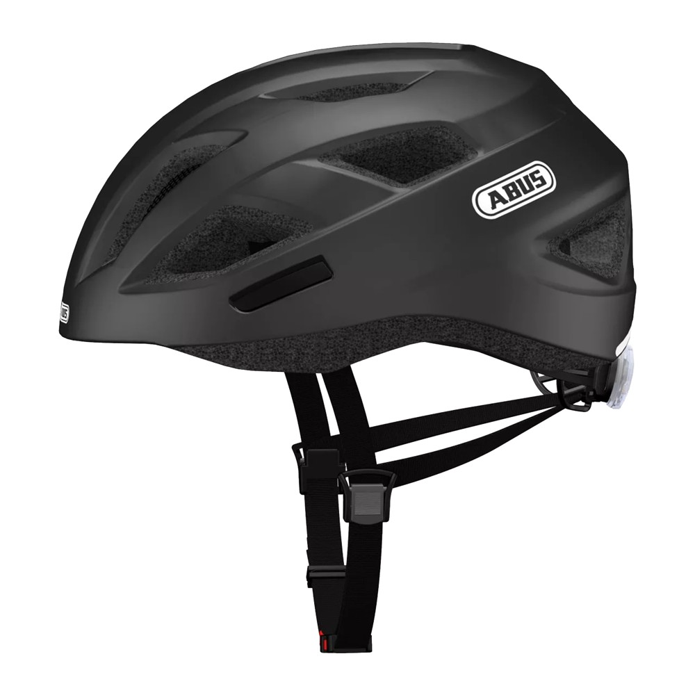 Studies consistently confirm: Wearing a bicycle helmet greatly reduces the risk of head injuries in a bicycle accident. Therefore, more and more cyclists wear a bicycle helmet, not only in sport, but especially in everyday life - whether for shopping, cycling, on the way to work or university The current ABUS helmets are characterized by high quality materials, the latest manufacturing processes and professional design. Head circumference: 52-58 cm Color: matte black Ventilation - 8 air inlets / 3 air outlets Adjustment system with LED rear light Belt length adjustment and closure Chin block with pillow Reflector for extra safety during darkness and twilight insect protection net EN 1078