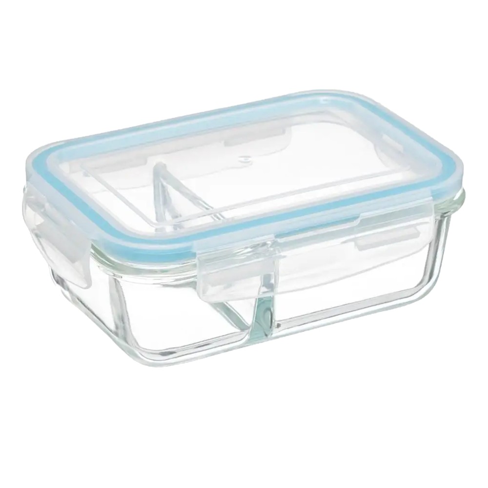 Hermetic bowl with compartment, glass/PP, transparent/blue, 20x13.5xH6.7