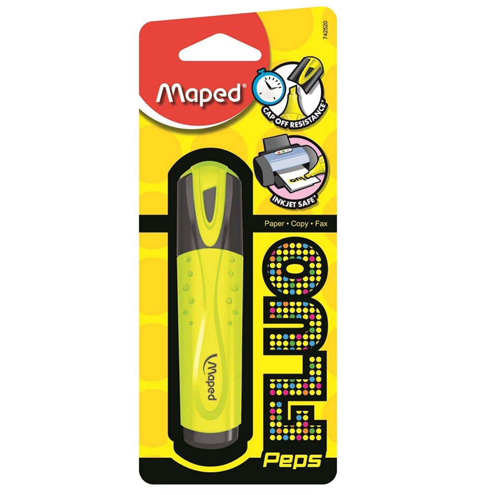 Highlighter Fluo Peps has quality fade-resistant ink and is reliable with consistent ink flow. It can be used on all types of paper: normal, photocopy, fax, etc. Beveled tip (writes 1 to 5 mm).