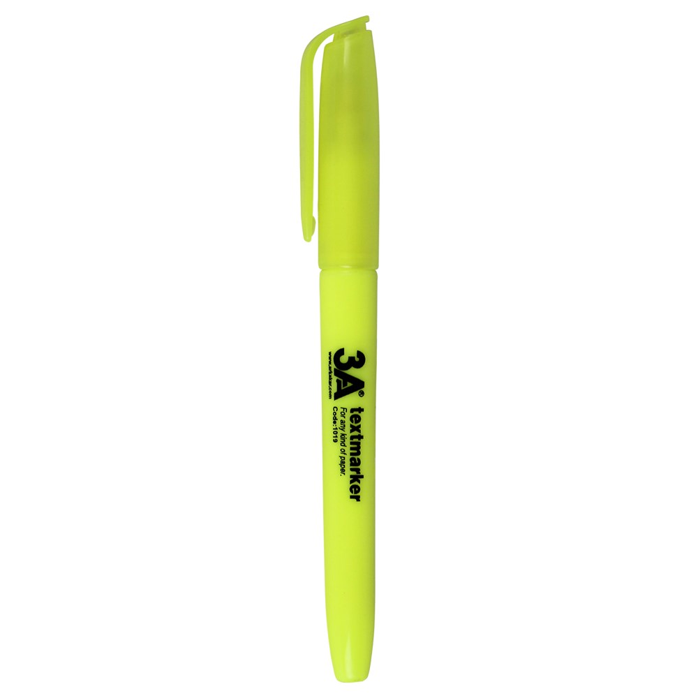 Highlighter pen, made of plastic material, with bullet-shaped tip, with a diameter of 0.3 mm, in fluorescent yellow color. It is used to highlight or underline important information in various texts or documents, while improving the learning process, and it has a soft plastic coating, which gives it ergonomic properties. This product is suitable for use by pupils and students.