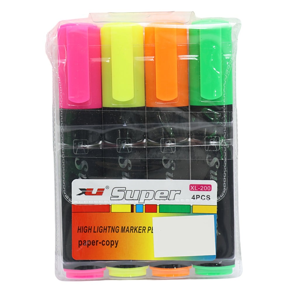 The "Super" highlighter comes in a pack of 4 different colors, offering opportunities to highlight and organize information in style. With a clear top and bright colors, it is ideal for study, work or creative activities.
