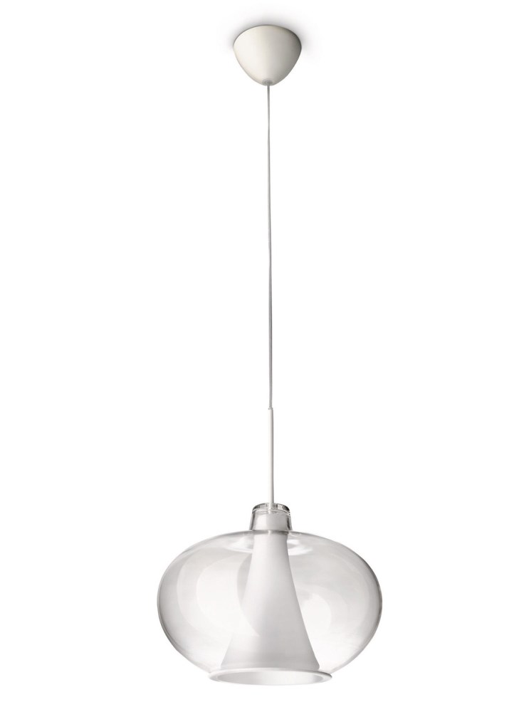 Light in interior spaces is an element that adorns and transforms the environment, creating contrasts of light and highlighting the architectural details. Hanging light with white plastic structure combined with transparent glass , brings contemporary to your interior spaces housing, bars, restaurants or hotels. This radiant brings elegance, finesse and endless possibilities of combinations with other elements of your decor .
