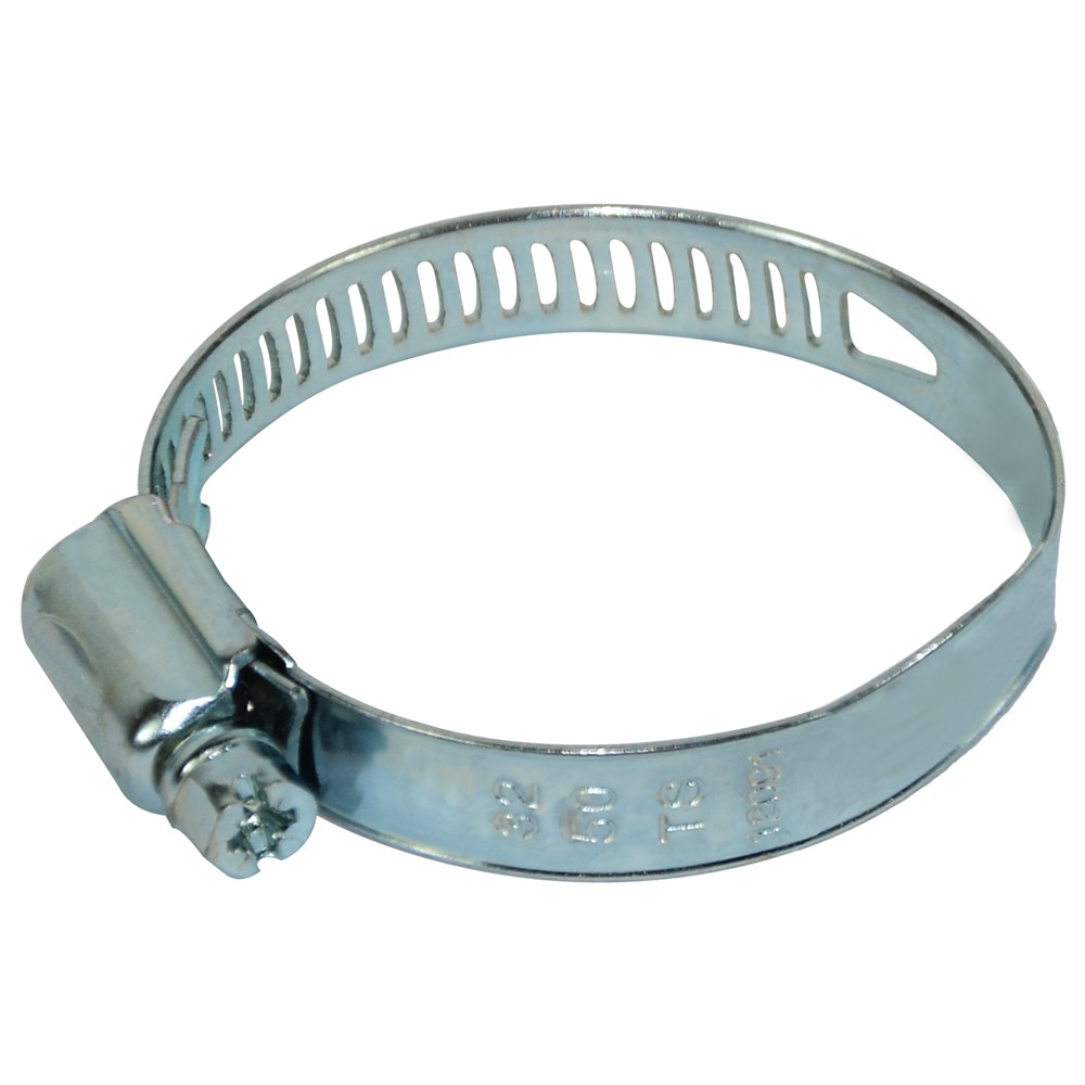A worm gear mechanism adjusts the clamp’s diameter to precisely apply sealing pressure. The band and housing are made of stainless steel and provides resistance to corrosion. The slotted head screw allows installation using a blade screwdriver. The screw