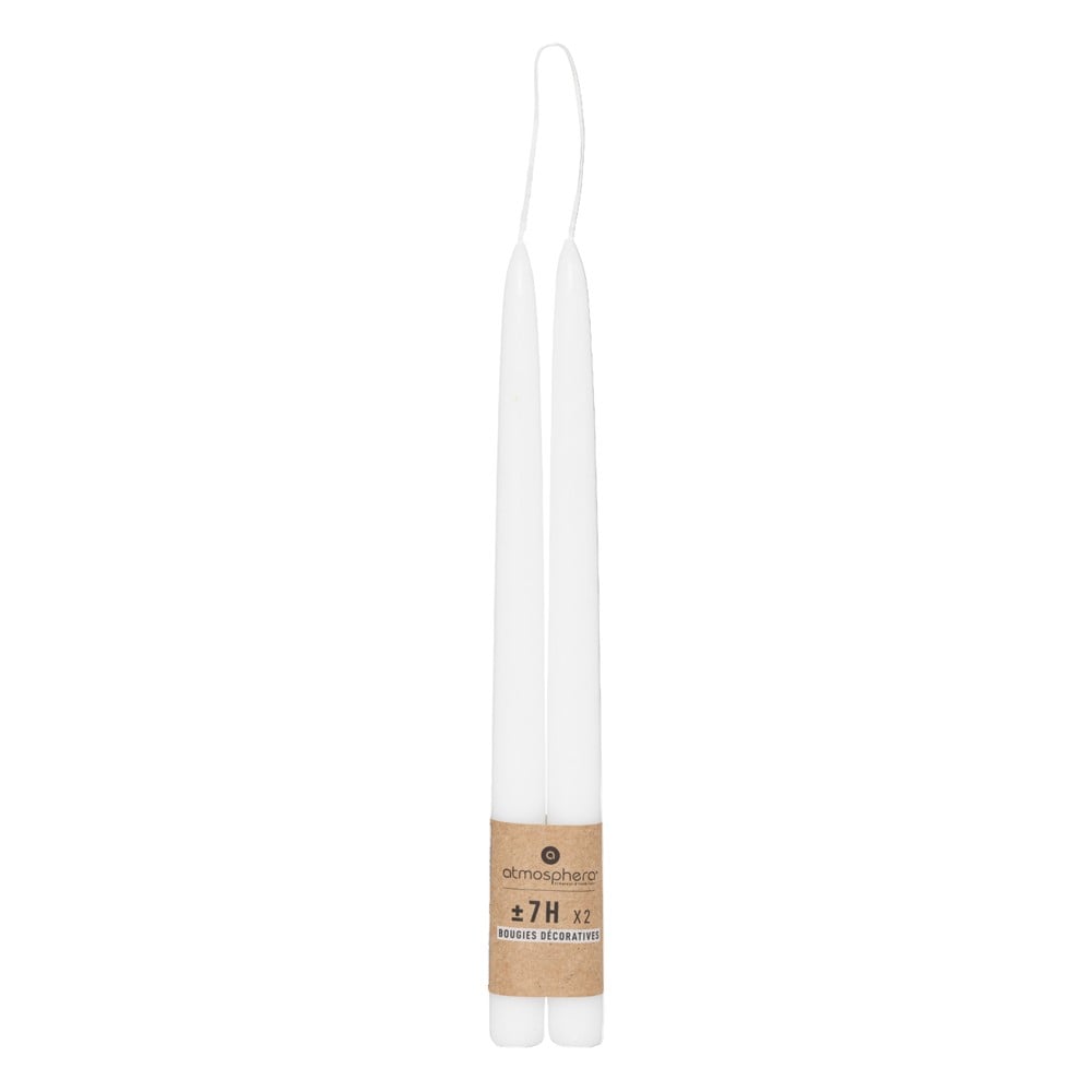 Long "Hugo" candles (packs 2 pieces), made of paraffin, white in color and 30 cm long, are an elegant choice to add a soft lighting and a warm atmosphere to your home. These white candles offer a clean and beautiful decorative element for many environments.